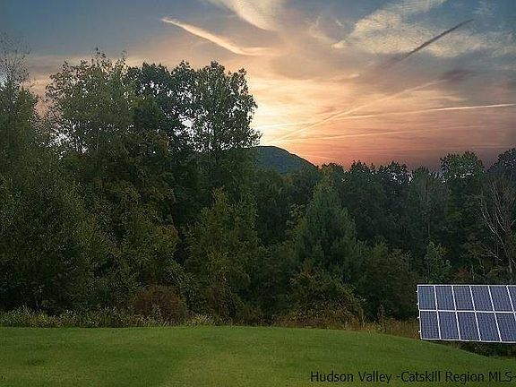 Ever dream of owning a totally unique home situated on 25 Acres with 2 ponds, 1 fed by the Butternut Creek, and the ability to be off grid and free of any dependency on outside energy sources? Here is that unique opportunity and only 2 hours from NYC. Bordered by hundreds of Acres of State Lands, this 2,652 square foot home, with an attached massive garage, is custom constructed to code with locally harvested native Catskill lumber. Featuring a huge eat in country kitchen with a full wall of pantry space and counter and cabinet space galore. The kitchen sliding glass door opens onto the deck, perfect for outdoor dining. The interior walls, doors, and cabinetry are of warm native yellow birch, oak, and cherry wood. Each board has been meticulously selected and installed to accentuate its grain and coloration characteristics. The exterior wood siding is installed over doubled 2x4 framing and features R50 insulation and the super high ceiling insulation is R75 preventing any heat loss issues. Ultimate comfort is provided by the heat pump and solar-powered hot air system; hot water is provided by a heat pump heater. This well insulated home generates more electric than it needs: 101% of its electric is powered by the 38-panel solar panel installation. The home is also equipped with an automatic air exchanger and an emergency full-house L.P. generator. The top-of-the-line Pella casement Windows have integral, as well as separate, insulated adjustable blinds. The massive, open floor plan of the lower level, also furnished with bathroom plumbing and top of the line windows, provides for great opportunity to incorporate your specific desires; be it office space, exercise rooms, additional bedrooms, and more. More features include: very high internet speed at 230Mps download/11Mps upload, a full-featured house alarm system, driveway entry alert, outside dusk to dawn lamplight on electric service pole, all optionally controlled, and plenty of parking area on the spacious blacktopped driveway. This unique private country property is located in the low property tax Town of Olive and is zoned to allow for additional dwelling units if desired. It is bordered by forever-wild state lands. The 2 ponds on the property have bass and yellow perch; the 1st pond is spring fed and the larger pond is fed by the Butternut Creek that runs through the property.