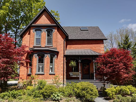 Welcome to 169 Rupert Ave - a lovingly restored Victorian jewel nestled on one of Stouffville's most coveted tree-lined streets. This stunning red brick heritage home masterfully blends timeless character with contemporary architectural updates. With undeniable curb appeal and a storybook exterior, this renovated 3-bed, 2-bath home offers a rare opportunity to own a piece of Stouffville's rich history. Beyond the picture-perfect facade, an airy, open-concept main floor awaits. A stylish chefs kitchen with generous storage makes entertaining a breeze, while herringbone heated tiles and gleaming white oak floors carry warmth and sophistication throughout. Original period doors, trim, and thoughtful millwork preserve the homes soul, beautifully complemented by modern updates like new windows and doors including a striking Douglas fir rear entry. Upstairs, exposed beams and cathedral ceilings elevate the tranquil primary bedroom, joined by two additional bedrooms and a newly renovated, modern 3-piece bath. Interior hardware and finishes have been meticulously restored to their former glory. A playful, modern spiral staircase leads to a sun-drenched loft ideal as a den, office, or guest space. Step into an exceptional backyard retreat - meticulously landscaped from front to back, this stunning outdoor space is bursting with mature native and ornamental perennials, tall grasses, and an impressive collection of over 30 evergreen and deciduous trees creating a private, park-like sanctuary. At its heart lies a large, heated Betz pool with an elegant Baja shelf and spacious deck for both relaxation and recreation. A soothing hot tub adds year-round appeal, while mature junipers provide lush, green privacy making it the perfect setting for peaceful mornings, lively gatherings, or indulgent staycations. A beautifully maintained English-style garden out-front offers timeless curb appeal with minimal upkeep, perfectly complementing the homes heritage charm.