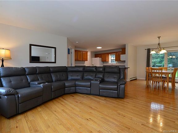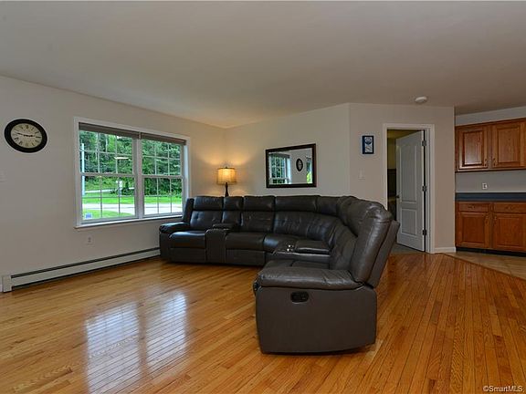 Pristine Young Open concept country ranch in the heart of Dayville. Kitchen with breakfast bar seating opens to Dining Area & Large Living room. Great for entertaining or keeping an eye on things. Handy Laundry area off the kitchen between the 2-car attached garage. Bring groceries in with ease through mud area. One level living features large Master Bedroom with Full Bath, At the other end of house are 2 Good sized bedrooms with Guest Full Bath. There is a Bonus Finished basement area which doubles as Media room and office. Finished ceiling with LED lights & Tile floor. Potential for plumbing. Storage area with ample shelves. Walk out from Dining area to large level manicured lot. Beautiful Flowering & Privacy trees. Fire pit and picnic table to relax and enjoy nature. All appliances including washer & dryer to stay. Ceiling fans in bedrooms. House is wired for alarm, key pad in mud area. Attic has plywood for storage. Home is well insulated R19, 200 AMP electrical, Steel Fire Door at bulk head. Andersen Windows & slider door. Low Maintenance/ Energy efficient. Tankless hot water. 2x6 construction for increased insulation, Alcoa Vinyl Siding, Kohler Bath/shower enclosures & fixtures. Bruce Oak Hardwoods, Epoxy Floor covering 2 car garage, Tan Architectural roof shingles, LED lighting fixtures in 2020. Heating bills avail. Oil 700 gallons year. Great commuter location close to Highway, shopping & restaurants. 30 minutes to Worcester or Providence