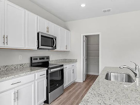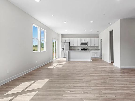 Step inside to discover a bright, open-concept layout featuring spacious living, dining, and kitchen areas designed for both everyday living and entertaining. The beautiful kitchen boasts stainless steel appliances, sleek cabinetry, generous counter space, and a large island that flows seamlessly into the main living area. Abundant windows fill the home with natural light, highlighting the clean lines and inviting atmosphere throughout.