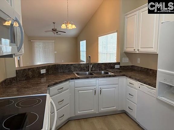 Enjoy this home with an open floor plan and vaulted ceilings that open into a spacious living area. The home is recently updated with fresh paint and luxury vinyl plank flooring in the entryway, kitchen, two bathrooms and laundry room. Carpet in primary bedroom suite, second bedroom and living room/dining room area. Large kitchen with additional built-in cabinets and granite-topped island for extra food prep and seating for casual dining. Screened porch has beautiful epoxy flooring with storage closet. Large patio with coordinated pavers. Great location near I-20, I-26, Hwy 1 and 378. Quiet cut-de-sac. Disclaimer: CMLS has not reviewed and, therefore, does not endorse vendors who may appear in listings.