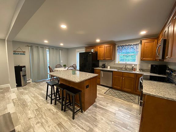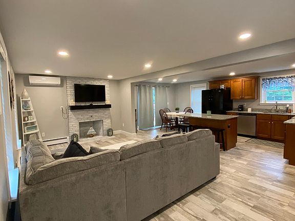 Newly renovated apt that is fully furnished (see photos for furniture) and move in ready. Bedroom 1 has a bunk bed with 2 full sized mattresses and a daybed with two twin size mattresses. Bedroom 2 has a king size bed. Both bedrooms have TVs. Large deck and fenced in back yard which is shared by tenant in next door unit. -Lease duration is negotiable -Renter is responsible for electric and heating oil. - No smoking allowed - Pets allowed pending approval of landlord. An additional fee will be required based on size/type of animal(s).