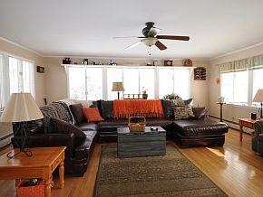 Great southerly light fills every room of this 3 bedroom 2 bath home on 2+ acres. Some of the amenities, built in book shelves, built in china caninet, hardwood/tile flooring, wood burning fireplace, awesome family room, 2 season porch, 2 car covered parking, wood stove, generator connection, paved driveway, outbuildings and even a place for chickens if you choose.