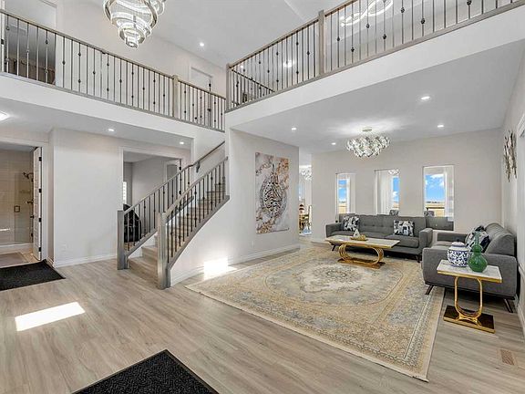 Welcome to this stunning and highly upgraded residence in the desirable community of Homestead. Perfectly situated with a playground right across the street and no neighbors behind, this home backs onto serene green space, offering both privacy and breathtaking views. Step inside and be greeted by a grand open-to-below foyer with dazzling chandeliers that set the tone for the elegance throughout. The main floor boasts a bedroom with full bath, making it ideal for multi-generational living. Enjoy not one but two spacious living rooms, a cozy fireplace feature wall, and a chef’s dream kitchen complete with a spice kitchen for all your culinary adventures. Upstairs, you’ll find a beautiful bonus room and four large bedrooms, including two luxurious master suites with spa-inspired ensuites. Every corner of this home has been thoughtfully designed with upgraded finishes, elegant lighting, and modern fixtures. The backyard features a huge deck, perfect for entertaining and enjoying the peaceful green space. With a triple car garage, there’s plenty of room for your vehicles and storage needs. This home truly combines luxury, comfort, and functionality—a rare find in one of Calgary’s fastest-growing communities.