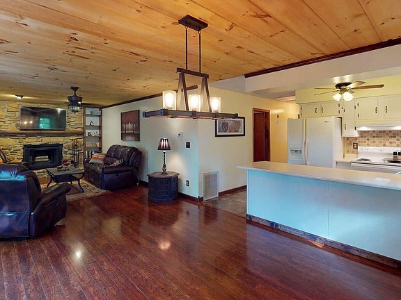 BIGGER THAN IT LOOKS! 4 BED/2.5 BATH RANCH ON FULL FINISHED BASEMENT! Seasonal Mountain View. Open Floor plan, STONE Masonry Fireplace, 2 Living Rooms, Dining Room, Sun Room, Wrap-around Deck, tile bathrooms, recently renovated with New HVAC, New Hardwood Floors, new lighting, living room in basement has built in coffee station, office, fenced yard, shed, beautiful landscaping. Sellers relocating. Walk to Helen, Chattahoochee River. 2019-06-28