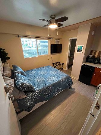 Studio is available now. Fully furnished with AC, mini fridge, and microwave. No parking. Shared laundry (washer/dryer) located on the 1st floor of building. Located across the street from the beach, walking distance to Ala Moana mall. Lease agreement is 6-months and month to month thereafter.