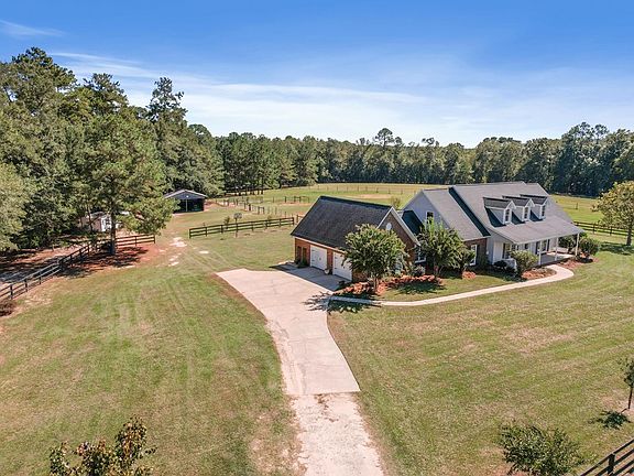 Refined Country Living - Experience the perfect blend of southern charm, tranquility, and income potential on this exceptional 23-acre Alabama estate featuring rolling pastures, mature woods, and wildlife. (An additional contiguous 20 acres also available for purchase for those seeking additional space and privacy). This traditional two-story home offers 5 spacious bedrooms, 3 full baths, 2 large bonus rooms, a sunroom, and oversized garage with extra storage. A kitchen filled with natural light, a living area fireplace and front porch swings invite gatherings filled with warmth, connection, and peaceful views. Outside, discover fenced pastures, a separate garden area offering dedicated space for sustainable living or homegrown harvests plus a pole barn and storage shed. The property includes five RV sites, offering passive income potential, as well as two charming exterior-completed cottages awaiting interior finishes. Customize them as guest quarters, short term rentals, studio, gym, or homeschool space. Just 15 minutes to town, enjoy graceful country living on paved road with easy access to shopping, dining, and healthcare. This property delivers the best of both worlds - rural retreat and convenience. Ideal for horse owners, gardeners or outdoor enthusiast seeking peaceful living surrounded by wildlife and open skies. Whether you dream of a family compound, homestead retreat, or income-producing estate, this property embodies beauty, opportunity, and timeless appeal.