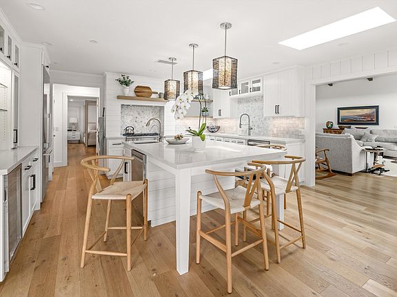 Tucked off a private drive with stunning mountain views, this modern farmhouse offers 3 beds, 3.5 baths, plus a fully equipped 1-bed/1-bath ADU with its own living room and kitchen. The expansive living room features vaulted ceilings, a dramatic stone fireplace, and floor-to-ceiling glass doors that open on both ends, creating seamless indoor-outdoor flow. The chef's kitchen includes a large island, designer fixtures, and top-tier appliances. The primary suite boasts a spa-like bath with soaking tub, steam shower, walk-in closet, and a connected den/media room. Additional features include mature landscaping, fruit trees, multiple patios, a firepit, and a 3-car garage. Located just outside Montecito's Upper Village. Available furnished for long-term lease.