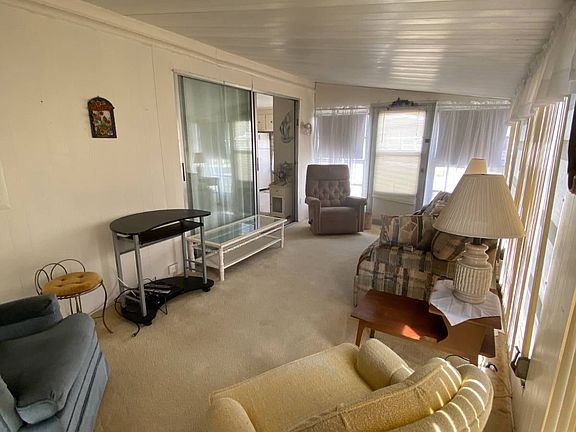 Open floor plan with 2 bedrooms & 1 bathroom is ready for a new owner. Features include: Fully furnished, two pull out sofas for guests, a portable AC in raised 9x18 Florida room, linen closet in bathroom, storage closet, kitchen pantry, 8x11 storage room/laundry room, and a new 11x38 carport. $716 per Month-Lot Rent Includes: Spectrum Select TV Package with 2 Set Top Boxes, Internet at 400 mbps, Water/Sewer, and Garbage pickup twice weekly. A Land Lease Manufactured Home 55+ Community (239 Homes) Located On The Scenic Little Manatee River with Entrance to Tampa Bay and the Gulf of Mexico. 30 Minutes South of Tampa off US 41. It is rural but it is minutes from shopping, beaches, and medical facilities. Come enjoy our quiet, active, and owner-occupied community (renting homes is not allowed). Our community has many amenities, including, but not limited to our beautiful Heated Pool, Shuffleboard Courts, Horseshoe Pits, Fire Ring, Bocce Ball, Pickle Ball, Tiki Hut, Clubhouse with Screen Room, Commercial Kitchen, Stage, Recreation Hall, Laundry, Memorial Bridge, 3 Ponds, Private Fishing Pier, Boat Ramp, Fish Cleaning Station, and 30 Boat Slips. Pet Friendly with Off-Leash Dog Park. Small Dogs and/or Cats Maximum 25 Pounds and 16" at Shoulder at adulthood-Limit of 2 Pets. Secured Storage, Unsecured Storage & Boat Slips are Available for Residents to Rent. All prospective buyers must come to the office prior to purchasing a home for a background and credit check. Contact Chulavista Landings Office for more information.