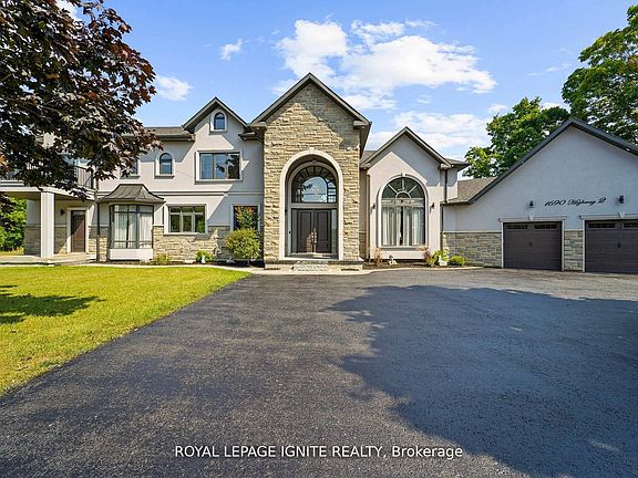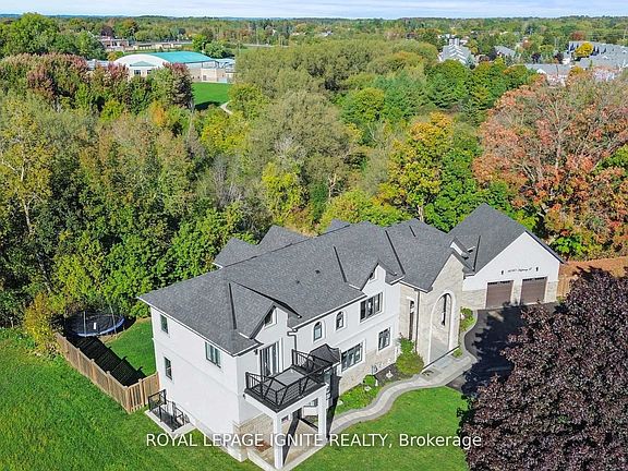 Welcome to this stunning custom-built estate home, just over five years new! Over 5000 sq ft of living space. This luxurious 5 +1 bedroom, 6 bathroom residence offers exceptional design, premium finishes, and a peaceful setting with Ravine views. Commercial zoning as well in Courtice Secondary Plan. Step into the grand foyer with soaring 22-foot ceilings, setting the stage for the open, light-filled interior. The living room features dramatic 18-foot ceilings and a striking gas fireplace, creating a warm and elegant space to relax or entertain. A wide staircase with sleek glass railings adds to the modern aesthetic. The chef's kitchen is a showstopper, complete with a 10-foot waterfall island, gas stove, and high-end stainless steel KitchenAid appliances ideal for gourmet cooking and hosting. Upstairs, three spacious bedrooms each feature their own ensuite bathroom, offering comfort and privacy for all. The primary suite includes a large walk-in closet, a luxurious 5-piece ensuite, and breathtaking views of nature. A versatile fourth & fifth bedrooms are conveniently located on the main floor. Newly renovated basement with separate entrance. Massive living/dining space. New stainless steel appliances. Huge bedroom with a walk-in closet and window. Step outside to enjoy a private deck and a massive backyard overlooking a tranquil creek perfect for relaxing or entertaining in a natural setting. View of the meandering creek and mature trees from the private backyard. Located close to all amenities, including shopping, dining, schools, and places of worship. Commuters will love the easy access to Highways 401, 418, and 407, with GO Transit and Durham Region Transit right at your doorstep. Millennium Trail access. Walk to the Courtice Rec Centre with a pool and Library. Don't miss this rare opportunity to live in a truly one-of-a-kind property that blends luxury living with everyday convenience!