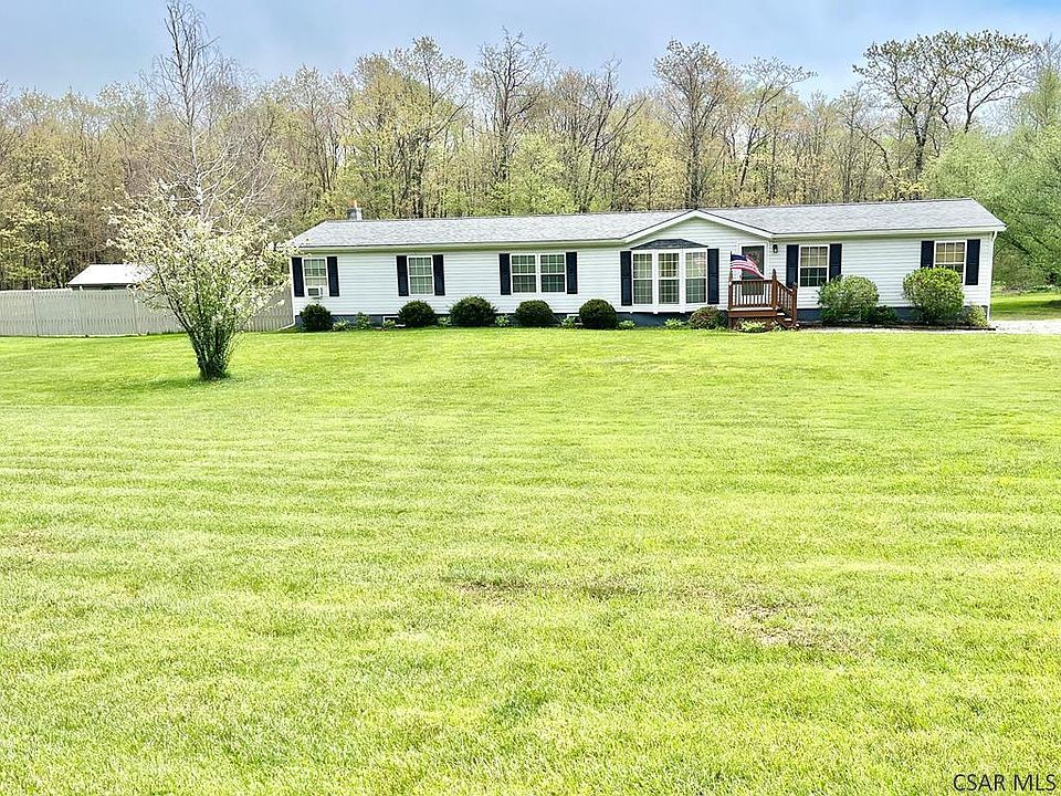 comfortable 3 bedroom ranch on 9/10 of an acre, updated baths, propane fireplace, 2.5 baths, full unfinished basement, with 1 car +garage under, oil forced air heat, window air conditioners. Quite setting fenced in yard, greenhouse, above ground pool.