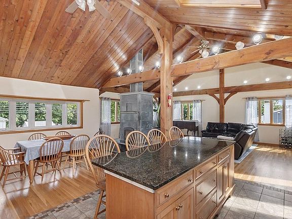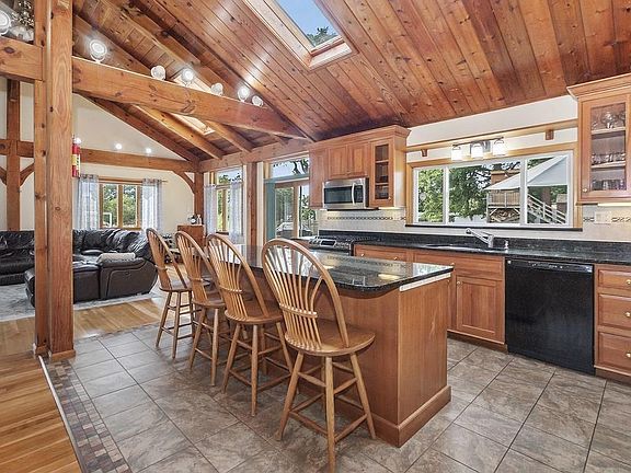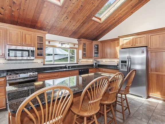 - Kit Dscrp: Countertops - Stone/Granite/Solid, Skylight, Ceiling - Cathedral, Flooring - Stone/Ceramic Tile, Kitchen Island, Stainless Steel Appliances, Open Floor Plan