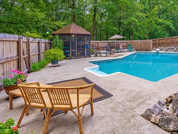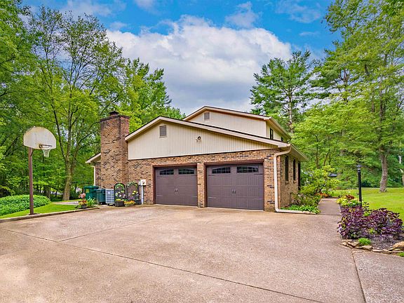 Situated on a 1.1+/- acre corner lot in desirable Kahre Lake subdivision on Evansville’s North Side this great home with inground pool, walk-out lower level, and access to Kahre Lake has been well maintained and updated by the same owners for over 30 years. This 4 bedroom, 3.5 bath home offers many recent updates per seller including heat pump 2023, pool liner 2022, new Trex deck 2021, 4 remodeled bathrooms, updated kitchen, replacement windows, newer patio door, newer roof, and much more! This floor plan offers a foyer with staircase that opens to the large living room with picture window providing gorgeous views of the grounds. The living room opens to the dining room making this floor plan perfect for entertaining family & friends. The updated kitchen offers granite counter tops, breakfast bar, stainless steel appliances, pantry, and a dining area with access to the updated deck overlooking the grounds and pool. The family room with beamed ceiling and fireplace is the perfect place to relax. The guest bath completes the main level. The second level offers a spacious owner’s bedroom with updated ensuite bath. There are three additional bedrooms with access to the updated full hall bath. The finished walk-out lower level is perfect for entertaining with a spacious rec room offering an abundance of space for games and features a wet bar with seating. The updated full bath offers easy access to the pool. The laundry area completes the lower level. Outdoor enjoyment is easy with the in-ground pool, gazebo, and abundance of patio surround ready for summer fun! The outdoor enjoyment continues to the community access to Kahre Lake for fishing, boating, and more. This home offers a 2.5 car garage, expanded drive for an abundance of off street parking, and a 24x14 detached building for storage and lawn equipment. This great home is located with easy access to major employers, shopping, and dining.