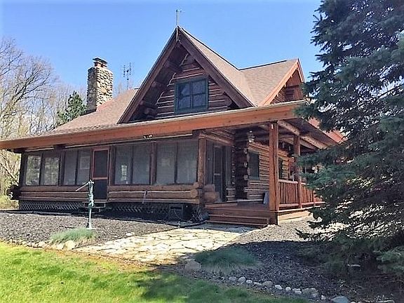 Amazing whole log home situated on 1.91 acres that back up to the Waterloo Recreation Area and overlook Winnewana Lake. Grab your kayak and head out where wildlife abounds or sit out on the screened porch at night and enjoy the dark sky lit up with stars instead of streetlights. Feel cool summer breezes from the patio or relax in the great room with its soaring ceiling and gorgeous stone fireplace. Seat a large group in the dining area and watch the fire crackle in the great room while the cook sets up in the kitchen that features maple cabinetry, a double oven, and cook top. Completing the first floor is a laundry, half bath, and a master bedroom with walk-in closet and full bath. Upstairs are two bedrooms, full bath, and a loft that overlooks the great room. The finished walkout basement has a kitchen with mini fridge, a recreation room, a study, and a full bath. A Vermont style wood stove warms the heart as well as the hearth. Oversized two-car garage with work area. Geo-thermal heat. With the Waterloo Recreation Area at your back door, miles of biking and hiking trails, and a non-motorized lake to silently enjoy, this home will make you feel like you are on vacation year-round. Professional pictures coming soon!