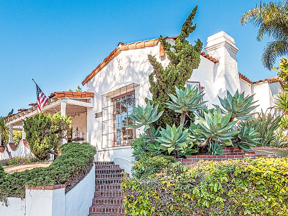 Opportunity to own one of the first homes built in Pacific Palisades. Spanish Mission Revival home built in 1927, home to the Barrymores & Carroll O'Conner. Gracious hacienda with separate stand-alone ADU with private patios and entrance. Perched on a knoll above Sunset Blvd with views of the ocean from the enclosed porch. Just blocks from the beach, Marquez & Palisades Village. Light-filled retreat with high ceilings and atrium/dining room with original stained/leaded glass. Original vintage fixtures and 20's tile throughout. Original refinished wood floors. Income potential-either live in ADU and rent front, or rent ADU. Main house 3+2 /Guest quarters 1+1.