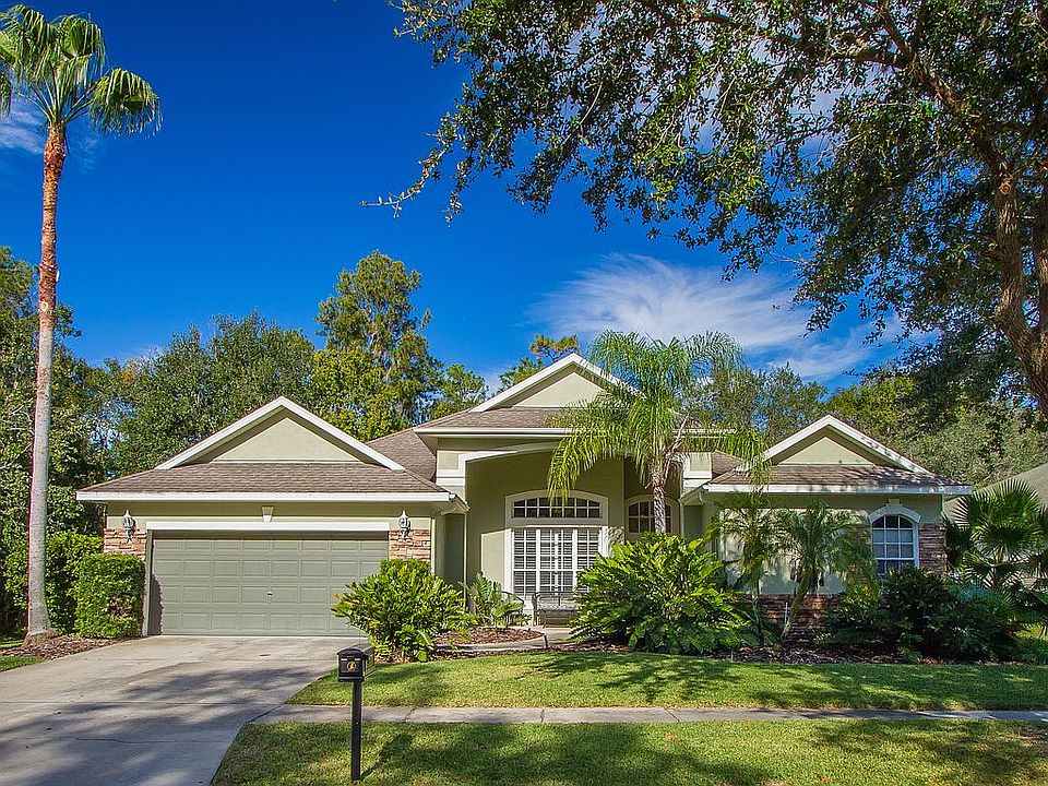 Sitting on a 1/2 acre lot with woods all around, this home provides the kind of privacy not normally found in Fishhawk neighborhoods. The 10' ceilings and 8' doors throughout the home really open up the interior space as well, giving each room a grand feel. Walking out through the large french doors in to the screened lanai, you'll find a beautiful and private pool and hot tub. Once outside the lanai, enjoy the private backyard with woods on all sides, complete with a fire pit, custom built children's play house and mature oaks. New roof just installed in September of 2020 as well.