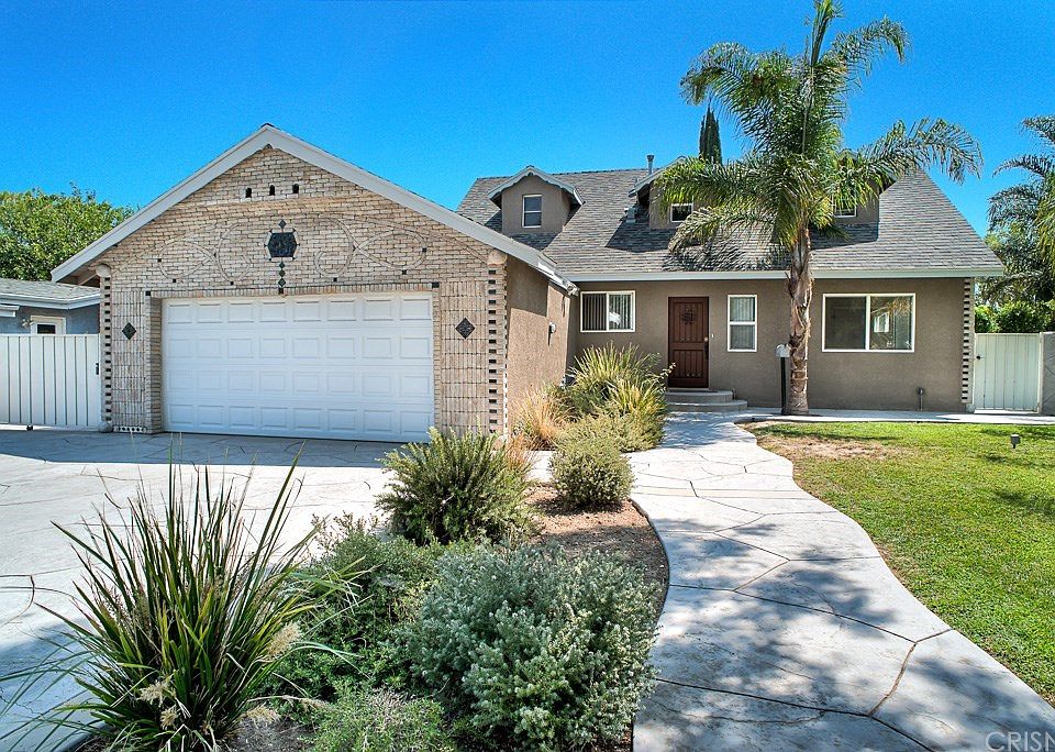 North of Rinaldi, this centrally located, beautiful Cape cod home will impress you from the moment you see the intricate stone work on the facade of the garage. Stamped concrete driveway and walkway as well as the patio and the side yards. This 4 bed and 2 bath home offers an RV parking space on the side, large enough to accommodate your boat or other toys. Front and back yards are adorned by mature Palm trees. This light and bright home offers, large kitchen with granite countertops and breakfast area. Laminate flooring throughout the house. Two downstairs and two upstairs bedrooms. Smooth ceilings, recessed lighting. Fireplace in the living room. Large, covered patio to blend indoor and outdoor seating, built in BBQ, water fall to relax after long days work. Large play areas on both sides of the house, perfect for a basketball court. Several fruit trees. Two car garage with custom shelving and a corner office.