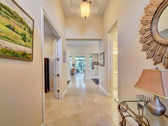 This spotless, magnificent 3 bedroom, plus library, 3 baths, 2 car garage has a spacious open floor-plan for today's busy lifestyles. The gourmet kitchen is a chef's dream with 42''cabinets, under and above cabinet lighting, stainless steel appliances, double ovens, high hat lighting, snack bar and family dining area. The luxurious master suite boasts coffered ceilings, French door to screened patio, his and her walk in closets, dual sinks, Roman tub and a walk in shower. Bedroom 3 has a slider to the Atrium. The screened patio over looks the private yard. This home also features a formal living and dining room, coffered ceilings and high hat lighting. The Bridges has 5 star amenities that include an club house, fitness center, resort style pool, tennis courts and children play areas.