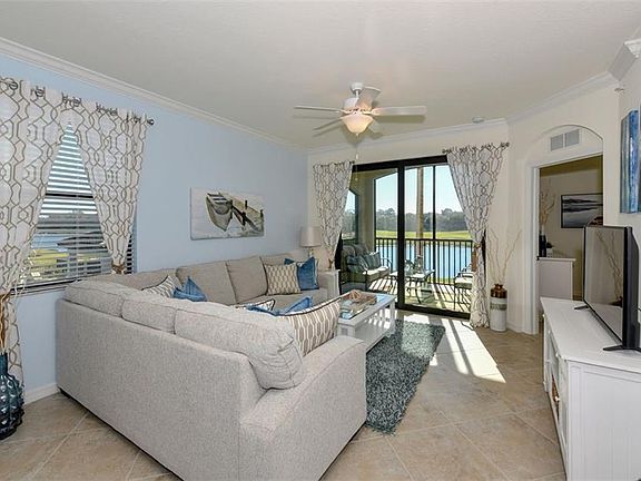 Stunning three bedroom two bathroom condo end unit, light, bright and professionally decorated with fine coastal chic furnishings on the second floor. Enjoy gorgeous views of the golf course as you enter this lovely condo. Plenty of room for the whie family. King bed in master with ensuite bath, queen bed in second bedroom and twin beds in the third bedroom. Just steps to the satellite pool. Enjoy hours of entertainment as you enjoy meals, entertain guests and watch the golfers navigate the new Arnold Palmer designed 36 hole golf course! Enjoy resort style living in Lakewood Ranch's newest golf Community! AMENITIES INCLUDE CLUBHOUSE WITH RESTAURANT AND TIKI BAR, FITNESS CENTER, RESORT STYLE SWIMMING POOLS WITH OUTDOOR GRILLE AND POOLSIDE SERVICE, A FULL SERVICE SPA , TENNIS AND BOCCE COURTS AND MORE! Golf Membership transfers for just $214, all you pay is cart fee! Easy access to I-75, local shopping and dining, University Parkway, Sarasota Airport and all that Lakewood Ranch has to offer. * HIGH SEASON = DECEMBER through APRIL*