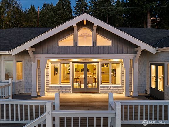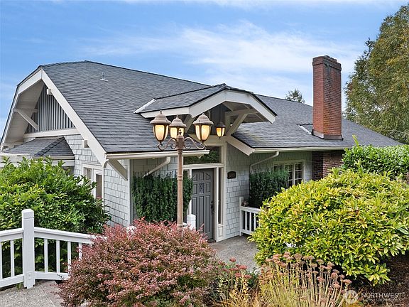 Set just off Maplewild Ave, this Three Tree Point home offers breathtaking views of Puget Sound & the Olympic Mountains. A perfect blend of traditional architecture & modern design, home features beautifully updated kitchen & baths, a huge living room ideal for entertaining, tall ceilings & a big statement fireplace. Enjoy stunning views from every west-facing room. Primary suite has a full bath, walk-in closet, & French doors that open to a private patio w/ views. Loft/ bonus room. Lower level: family room wired for surround, shop/ tool area, large laundry room w/ folding station, ample storage, & half bath. Generac Generator. Fully fenced, well-manicured yard. Detached 3-car garage w/ separate garden room & half bath. Welcome home!