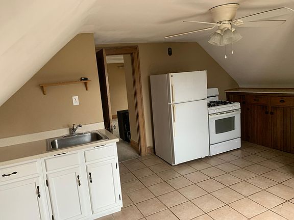 Spacious 1 bedroom unit on 3rd Floor. Easy access to I-90, Kitchen w Refrigerator, Oven. Ceiling Fans in bedroom, Living Room and Kitchen. Garage with Opener, Off street parking available for 2 cars. Washer/Dryer hookup available in basement. Max Occupancy is 2 tenants. Tenant responsible for Gas and Electric utilities. No smoking allowed. Small cat or small dog potentially permitted. Dependent on meeting pet care requirements and owner discretion. Tenant Screening required. Minimum 1 year Lease.
