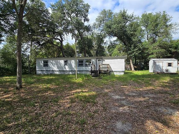 This is a single-wide mobile home is fully furnished and nestled in a wooded area that's completely fenced in. Located less than an hour from Daytona Beach and still has local stores close by. The property has been recently updated, featuring new windows, siding, and remodeled bathroom. Additionally, it includes two wall units for climate control and a shed equipped with 110 power.