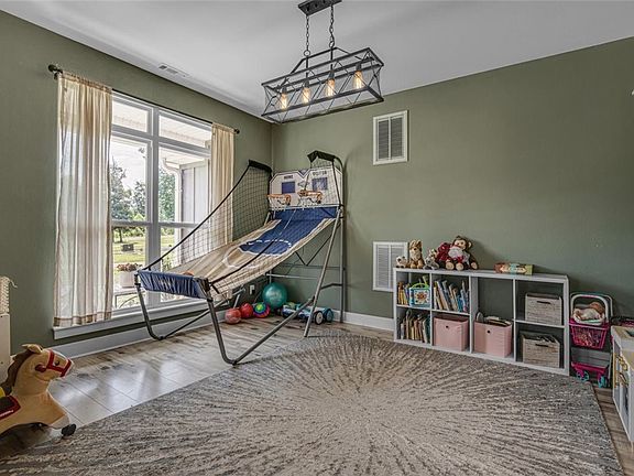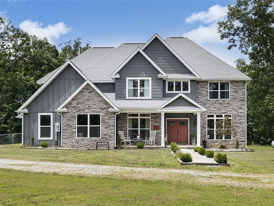 Craftsman style home that offers the perfect blend of style, comfort and recreation with a full basketball court and 8.67 scenic acres! Covered front porch with double doors that lead into the two-story entry. Spacious living areas that include formal dining or office, kitchen with island and breakfast area, and huge living room. Ample light flows into the home from all spaces and provides views of the property. Upstairs you will find all 3 bedrooms and an extra-large bonus room with additional bunk room attached. Main suite has a hydrotherapy shower, double glass sinks, and closet that connects to laundry.