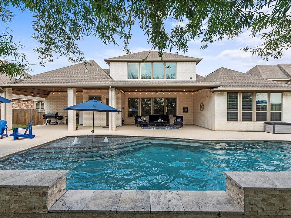 This elegant Fairfield home blends luxury and comfort with bright, open spaces and refined finishes throughout. The chef’s kitchen showcases granite countertops, stainless steel appliances, a pot filler, and an oversized island with seating for six, opening seamlessly to the living area framed by coffered ceilings, a stone fireplace, and windows that fill the space with natural light. The primary suite offers a relaxing retreat with hardwood floors, a spa-style bath with dual vanities, a soaking tub, and a spacious walk-in closet. Each secondary bedroom includes its own ensuite bath for privacy and convenience. Upstairs, a large game room and hidden bookshelf room add personality and flexible space for work or play. Step outside to your backyard oasis with a sparkling pool, covered patio, and lush landscaping—ideal for entertaining or unwinding at the end of the day. The home backs to Swenke Elementary and includes a private access gate for easy drop-offs.