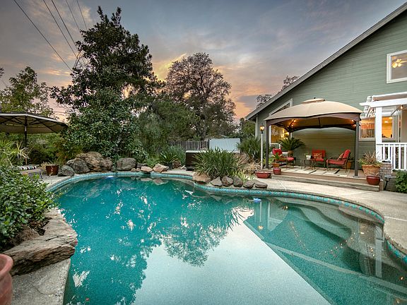 Everyday will feel like you're on vacation in this amazing West Redding home! One of the most beautiful backyard pools in Redding! -Updated with a PebbleTec finish & surrounded by gorgeous, mature landscaping! You'll love evenings in the NEW HOT TUB! Huge backyard even has a basketball court & room for a garden or orchard! This lovingly maintained home is over 2100 SqFt with 3 bedrooms PLUS an OFFICE, & 2.5 bathrooms! Enormous, retreat-like Owner's Suite has a roomy sitting area & it's own Balcony! EnSuite Bathroom has granite counters & a separate soaking tub. With a backyard like this, you'll have guests over all the time! Good thing the home is huge with a Formal Living & Dining Room PLUS a Family Room (with a fireplace + wet bar) & Breakfast Nook. Granite Kitchen & dual pane windows