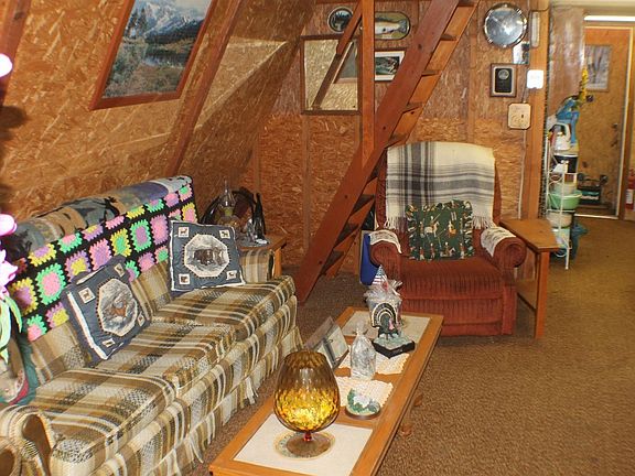 Private and secluded 10+ acres; Rustic A-Frame with large addition; 3 Bedrooms and 1 Bath. Generator and 12 volt electric system allows for off-the-grid seclusion. Electric available along the roadway. Can be sold fully furnished and ready to go!! Wood stove provides heat. Shed.