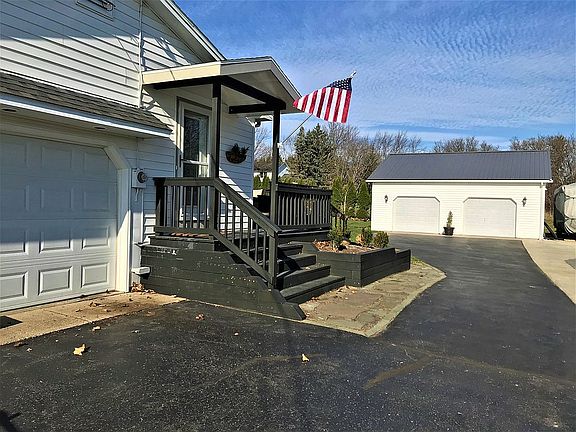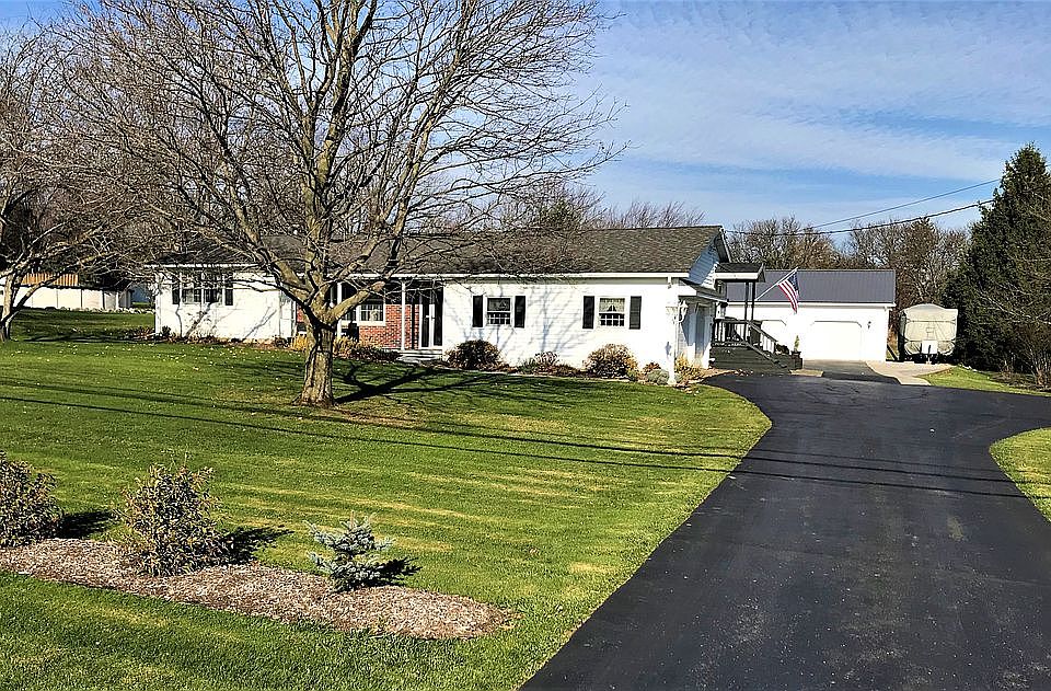 Pristine 3 bedroom 2 bathroom ranch home with 2 car attached garage and large pole barn. Detailed updates inside and out. Newly remodeled bathrooms, central bath has a soaking tub and double sink, second bathroom off the kitchen has a large walk in shower and custom tile. Hardwood floors in bedrooms, living room, and dining room. New slate tile floor in kitchen, custom built light fixture, lots of cabinet space with pantry; newer Kitchenaid dishwasher and stainless steel double bowl sink. New luxury vinyl plank floor in sunroom. Finished basement rec room with plenty of place to play. Beautifully maintained, well loved home ready to move in. New 50 gallon hot water tank, high efficiency central air conditioning and heat were installed in 2009. 1500 gallon septic tank. 30x30 insulated pole barn with electric and loft and additional storage shed.