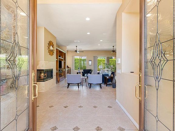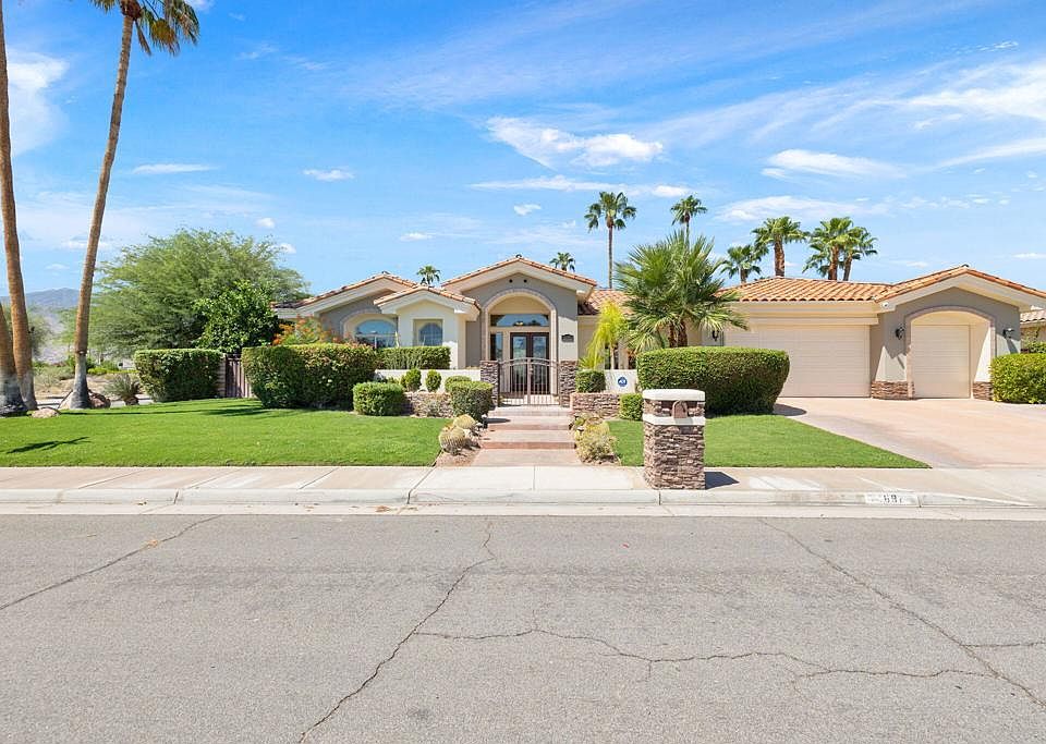 Wonderful South Palm Springs home in the Los Compadres neighborhood of Park Escoba. Beautifully maintained view home with pool and spa plus three car garage. As you enter the double glass entry from the enclosed courtyard, you have full view of living, dining, breakfast and island kitchen areas, all in terrific condition.Two guest bedrooms and two baths on one side of the home, one has access to the rear yard.On the other side of the home is the master bedroom and spa like bath with soaking tub and walk in shower.The island kitchen is a cooks delight with like new, double ovens, gas cooktop, refrigerator, dishwasher and island sink.There is a large laundry room with sink and lots of cabinets.Beautiful landscaped backyard with lawn, citrus trees, plus pool and spa and magnificent views both south and west.This home has been meticulously maintained including all mechanical systems.