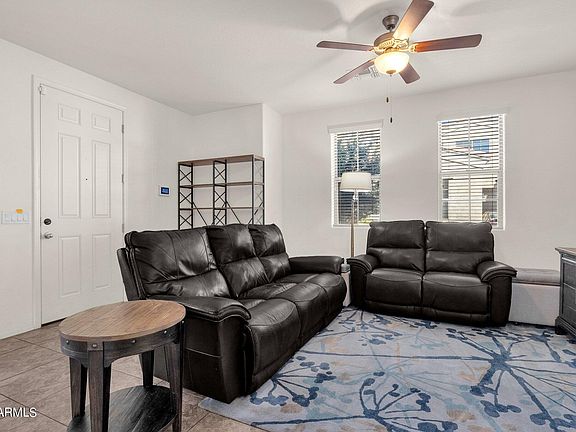 Adorable 3 bedroom 2.5 bathroom detached home on the border of Apache Junction & Mesa that shows like a new home. The first floor features an open great room floorplan with upgraded 20x20 tile, 9 foot ceilings & plenty of natural light. You will love the spacious kitchen with upgraded mocha maple cabinets, recessed lighting, stainless steel appliances, large island and walk-in pantry. Upstairs features new laminate wood flooring, 2 spacious secondary bedrooms, laundry room and huge guest bathroom with double sinks. The oversized primary suite features an en suite bathroom with double sinks and spacious walk-in closet. No carpet! Ceiling fans throughout home. Covered back patio with a shaded backyard. This home is on one of the best lots in the neighborhood a corner lot with an adorable front patio and an extra-long PRIVATE driveway for you and your guests' parking (enough room for a truck!). Villagio is a secure, 37 home gated community with a pool and beautiful park/playground with BBQ grills. The HOA covers front yard landscaping and pest control. This home is in a prime location very close to the US 60, Usery mountain park, Tonto National Forest, and all of the best shopping, dining and conveniences the East Valley has to offer.
