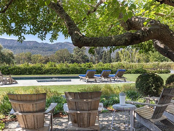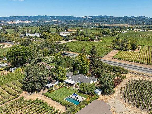 Vineyard views and wine country living at your own enchanting retreat on the Napa Valley floor! This very private oasis boasts of light-filled interiors, inviting outdoor spaces, a verdant lawn, fruit trees, and a sparkling swimming pool with spa...all overlooking acres and acres of grape vines and the majestic Mayacamas Mountain Range, which define the geography and vistas of Up Valley Napa. Approximately 2/3 of an acre planted to Cabernet Sauvignon, yielding about 2 tons of grapes annually. All of this incredible escape is minutes from Napa Valley's finest dining, a short hop north to Saint Helena, a bit further to Calistoga, and south through Rutherford to Yountville and the city of Napa.