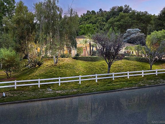 Serene single-level living awaits in picturesque Fallbrook adjacent to the Pala Mesa Golf Course and minutes to highway access, yet a world apart in an exceptionally tranquil setting! This beautifully maintained gated sanctuary exudes pride of ownership and offers an expansive 3,315 sf of living space that blends comfort with soaring ceilings and custom finishes. Built in 2000, the property offers outstanding craftsmanship and a timeless design. An open, inviting open floor plan and generous room sizes create a spacious, welcoming ambiance. Enjoy lovely formal spaces plus an option for an executive office with fireplace, 3 spacious bedrooms, including a primary suite, and 2.5 bathrooms. This impressive home is equally versatile as an entertaining hub or tranquil refuge with a well-appointed kitchen offering modern appliances and ample space for culinary creativity. Vast windows throughout stream in natural light, enhancing the interiors. Situated on a sprawling 34,848 sf (.80 acre) lot with no neighbors to the south and convenient access to local amenities, schools, and recreational opportunities. Discover the sought-after Fallbrook lifestyle for yourself in this special offering!