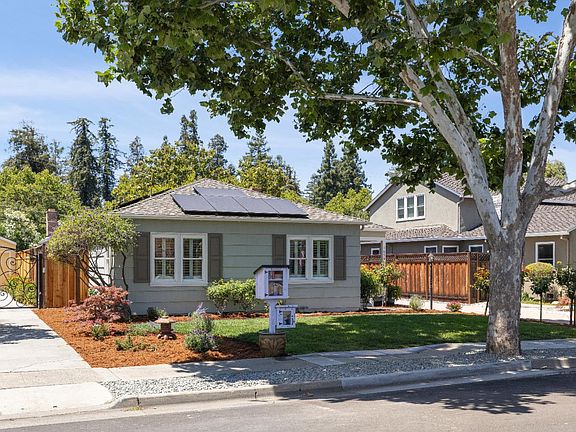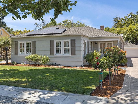 Welcome to 1691 Topeka Avenue, a distinctive 4-bed, 3-bath residence in San Jose's cherished Rose Garden neighborhood! Designed around a central slate-tile atrium, this 2,106 sq ft home is bathed in natural light while offering exceptional privacy and architectural character throughout. Three beautifully updated full bathrooms provide modern style and comfort, while the thoughtfully designed kitchen-remodeled in a previous era-delivers both functionality and timeless charm. A long stamped concrete driveway leads to a oversized detached 2-car garage with workshop or flex space, ideal for creative projects, storage, or future expansion potential. The front yard features abundantly producing rose trees, while the peaceful backyard includes a lush lawn bordered by four mature red grapevines. A rooftop solar array-paid off at closing-will dramatically slash your PG&E bills and enhance long-term energy efficiency and sustainability. Located near the renown San Jose Municipal Rose Garden, Library, and the Rosicrucian Egyptian Museum and distinguished Abraham Lincoln High. The nearby Alameda corridor adds lifestyle appeal with an eclectic mix of cafes, restaurants, Whole Foods Market, local businesses, and shops-all close at hand in this highly desirable, well-connected neighborhood.