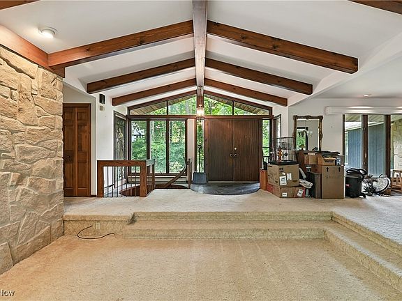 This sprawling 4,775 sq ft, 8-bedroom, 4.5-bath home is full of character, history, and potential. Thoughtfully constructed with architectural pieces salvaged from historic homes in the area, every detail tells a story. At the heart of the home, a stunning spiral staircase leading down to the finished basement- crowned by a full stained-glass wall, which is an unforgettable focal point. The home features unique touches throughout, including an original intercom system, built-in glass display shelving with lighting, and four fireplaces upstairs. The lowered family room boasts vaulted ceilings with exposed decorative beams and opens to a walk-out deck that spans the entire length of the home, perfect for entertaining or relaxing above the treetops. Downstairs, the basement is ready for guests or extended living with two additional bedrooms, a second kitchen, fireplace, wet bar, and even a darkroom. This property is a rare opportunity for someone with vision.