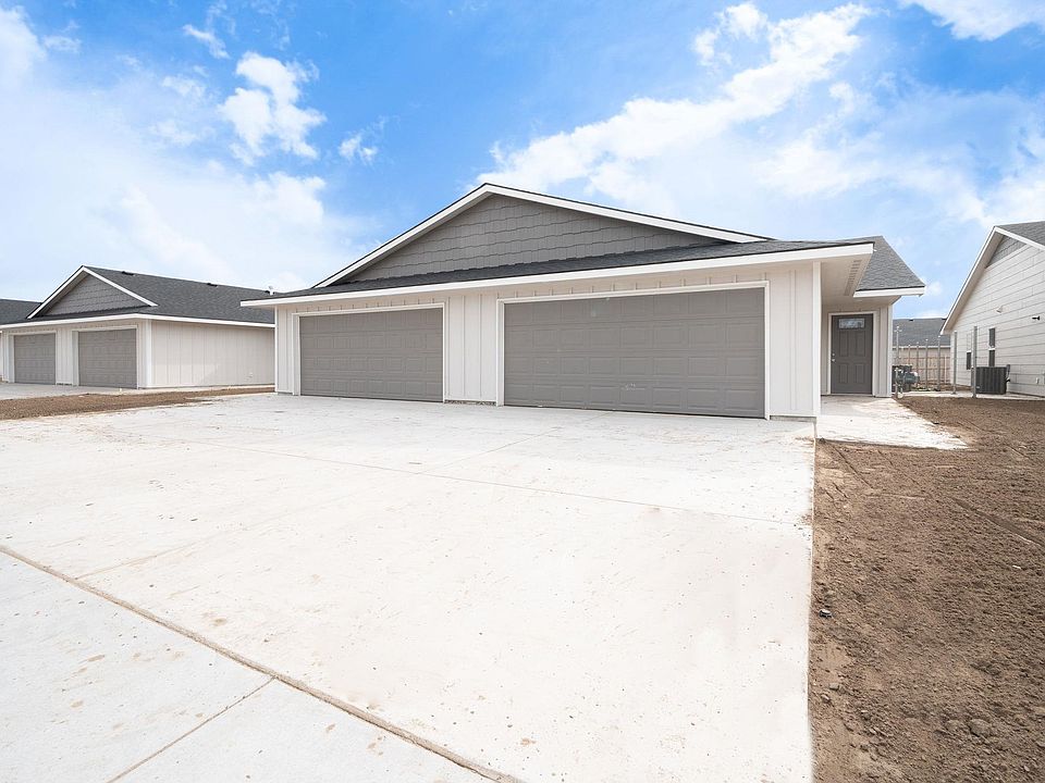 Go modern with stairless living. A terrific buy in this new three-bedroom, two baths ranch style home. The elegant living room with vaulted ceilings boast openness and the fireplace adds a cozy note to the living room. Well-designed convenient kitchen has quartz counters, subway tile backsplash, walk-in pantry and island for seating. Master bedroom with large closet, ceiling fan & walk-in four-foot shower. No carpet with luxury vinyl flooring throughout. Ideal utility room off the two-car garage extended to fit a Suburban. New lawn, sprinkler system and shared irrigation well. Private rear yard with a new privacy fence to help block the cold wind. Ready to move in just adding the finishing touches. Easy to show.