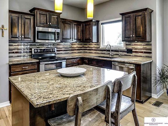 This open concept two story home rests on a large, vinyl fenced lot, just a couple blocks away from the neighborhood swimming pool and park. Gorgeous wood floors lead you from the entrance to living area w/ stoned fireplace, oversized windows with custom blinds and nine-foot ceilings. Stainless steel appliances, granite countertops, tasteful ceramic tile backsplash and walk-in pantry set this kitchen apart! Main floor also boasts an office and drop zone with custom cabinetry. Four bedrooms up, including master bedroom ensuite bath with shower and whirlpool tub as well as a walkthrough closet connecting to the laundry room. Ultra-functional floor plan! Daylight finished basement features a rec room, ¾ bath and an additional bedroom with a huge walk-in closet. Backyard is the perfect space for summer gatherings hosted on the extended stamped patio and gas fire pit as well as mature landscaping.
