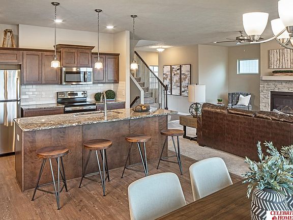 The “Kendall” by Celebrity Homes. Open Design that offers an oversized Island Kitchen with Side Office, Gathering Room, Raised Ceilings, Owner’s Suite includes spacious Bath w/Deluxe Shower, Bath RI at Bsmt, and that’s just the start! Quality GE Appliances, Designer Light Pkgs & Extended 2-10 Warranty Program. And of course Celebrity Homes Exclusive “Welcome Home Package” (Refrigerator, Washer & Dryer, GDO, even blinds!) (Pictures of Model Home) Price may reflect promotional discounts, if applicable