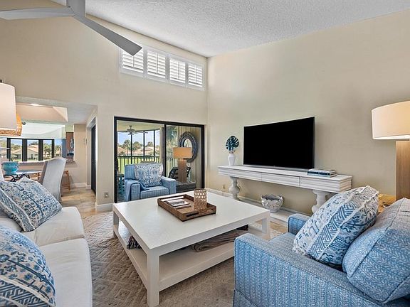 Spend the season in Waterbend at Jonathan's Landing with serene golf-course views from a bright, vaulted-ceiling 2 bedroom + den (the den functions perfectly as a third bedroom). This fully furnished, thoughtfully designed condo is clean and ready to move in, your Florida lifestyle awaits! Enjoy an updated interior, two full baths, and a spacious screened lanai perfect for mornings with coffee or evenings with cocktails. There's a 1-car garage plus a golf-cart garage, plus driveway parking. Community perks include the Waterbend lake-front pool, and within minutes you're at beaches, local parks, top-rated restaurants and shopping. The setting at Jonathan's Landing is manned and gated for added peace of mind. Access to the community pool is included with the lease. Tenants must be club members to participate in the club's golf, tennis, pickle-ball and dining activities (membership not included). Offered as a seasonal rental for 2025/26. No smoking; pets allowed per HOA. Minimum 3-month term for seasonal; application required.