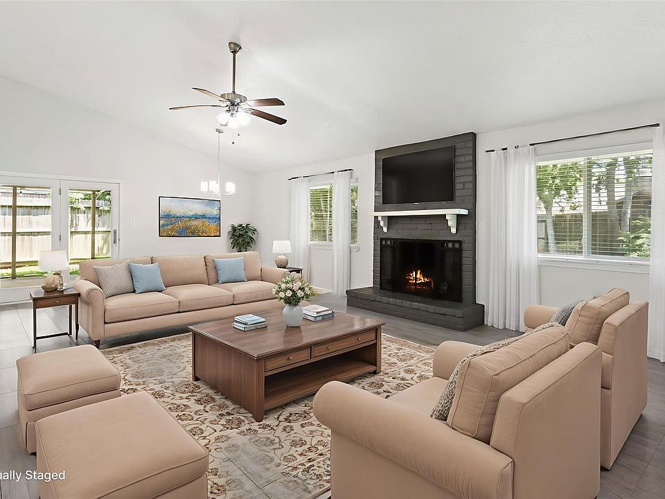 Welcome to your new home. 16915 Stardale, has many upgrades in 2025, fresh paint inside and outside, new roof, new appliances, LVP flooring and ceiling fans in the bedrooms. There is zero carpet in the home. Kitchen and bathrooms were upgraded in 2017 and Low-E windows were also installed. This is a wonderful open floorplan with a vaulted ceiling in the dining/family area and French doors leading to a covered side patio. Sliding glass doors from the owner's suite led to a nice size backyard. The home has been inspected by a licensed electrician and brought up to code. Foundation repair is transferable. Stop by and see your new home.
