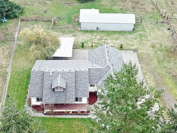 Lovely custom 2,169 sf with Barn on 2 acres. Spacious vaulted great room is open to kitchen w/breakfast area PLUS formal dining room. Entire back wing is master bdrm w/ elegant five-piece bath. HP & gas FP. Covered country porches bring it outdoors to aggregate patios which wrap from front to back. 2 car garage, 2 car carport, 22x50 barn/shop & full pasture area. Gated entry & interesting landscaping on level 2 acres. Sprinkler sys. Easy commute to I-5 between Seattle & Portland. Move-in ready!