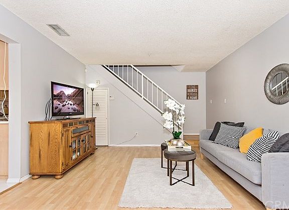 Come see this well maintained two bedroom, one bathroom condo in the City of Cerritos. Located in the ABC school district, this home is not only desirable but perfectly located as well. Minutes to the 91/5/605 freeway, you are a hop, skip and jump away from wherever you need to go. Meticulously maintained, you are ready to just bring your bags and move right on in. Downstairs flooring a mix between laminate and tile flooring in the updated kitchen. As you walk up the stairs, you will be greeted by two spacious bedrooms and one full bathroom. The master bedroom features a large walk in closet with lots of natural light. On the outside of the house is a fenced area perfect for entertaining. Home comes with one garage and there is a shared laundry area between three other units. Homes in this community tend to go fast, so don't let this one get away!