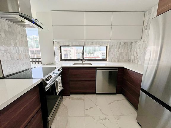 Location Location Location!!! Completely renovated 2/2 apartment. New tiles throughout, new kitchen, appliances, bathrooms, fans, doors, everything. Bright and airy unit in a quiet and well-maintained, gated community just a short walk from the ocean. Enjoy resort-style amenities: a huge heated pool, jacuzzi, sauna, gym, tennis courts, basketball court, library, party room, BBQ area, and 24/7 security. Conveniently located next to shopping plazas, restaurants, pharmacies, Milan's Supermarket, Starbucks, Marshalls, parks, A+ Schools and more. Just minutes from Aventura Mall and Bal Harbour Shops. Perfect as a primary residence, vacation home, or rental investment!