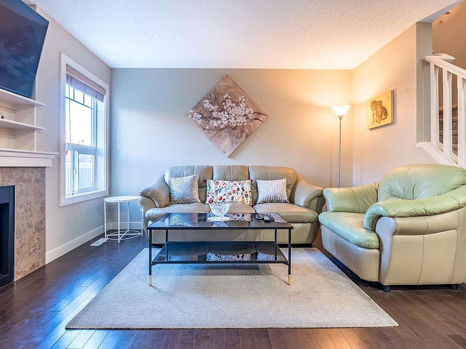 Welcome to this beautiful half duplex in the family friendly community of Callaghan. The main floor features hardwood throughout, a bright living room with a cozy gas fireplace, and a kitchen complete with an eat-up bar and corner pantry. The fully finished basement provides a spacious family or flex room and a full bathroom, ideal for guests or recreation. The second level offers exceptional functionality with two generous bedrooms, each with its own full ensuite and walk-in closet, essentially creating two primary suites. A bonus room and convenient upstairs laundry add to the comfort. Enjoy the beautifully landscaped backyard featuring a deck, gazebo, and full fencing, plus the added privacy of a walking path behind the home rather than direct rear neighbours. With a double attached garage and close proximity to parks, playgrounds, schools, shopping, and more, this is an excellent opportunity in a desirable location.
