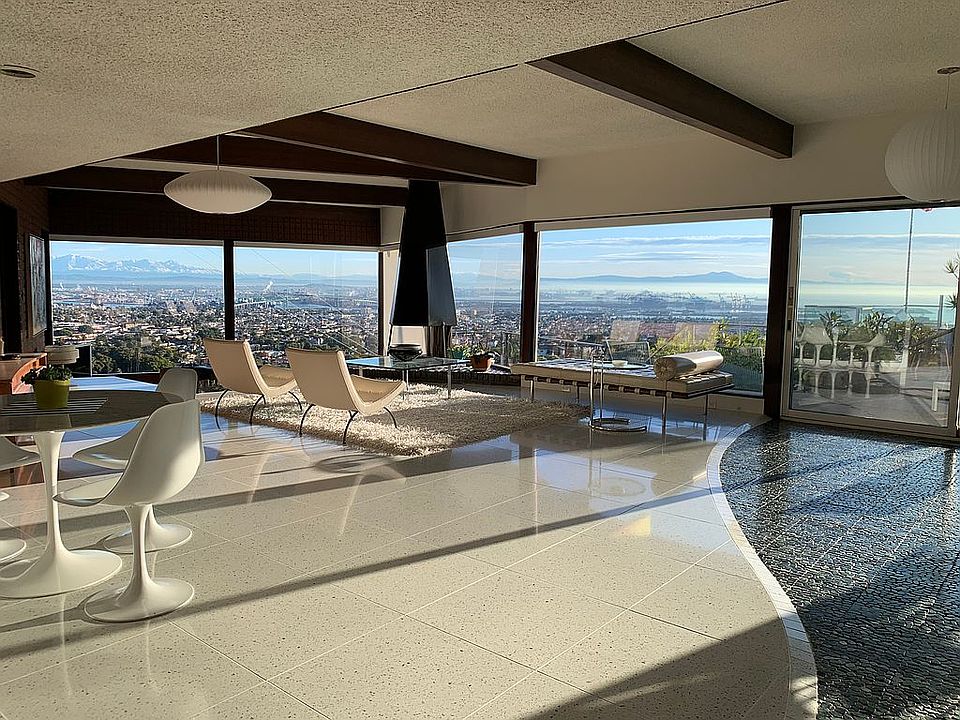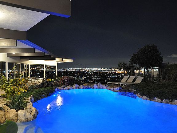 Recently restored, the renowned 1959 "Tracey Residence", features spectacular, panoramic views spanning from the Hollywood sign, past downtown Los Angeles, the San Bernardino Mountains, San Pedro and Long Beach Harbors, the Pacific Ocean, and the Orange County coastline all the way past Camp Pendleton. Situated high upon the hill of beautiful South Shores, Rolly A. Andrew designed this Mid-century Modern Masterpiece to capture filtered sun light by day and the ever changing views through out the day and night. Surrounded by walls of glass, this very private open floor plan seamlessly melds indoor & outdoor living space. Solar powered, central AC, beautiful swimming pool and mature landscape. This home is a dream come true.
