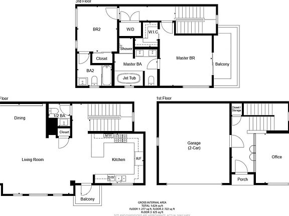 - 3 Story, 2 BR, 2.5 BA, 2 Car Garage, w/ Full 1st Floor Office, 1614 sq.ft.