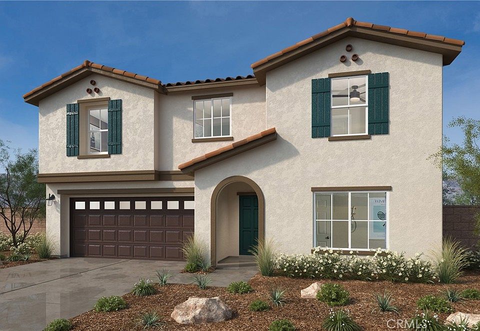 Beautiful Spanish style two-story open concept home! It has 4 bedrooms, den, and 2.5 bathrooms and loft in the beautifully planned community of Rancho Madrina. No waiting lists or bidding necessary. Ten-year limited warranty. This home has everything you want and look for and is designed to be ENERGY STAR certified and delivers a superior level of energy-efficient comfort which includes the latest in home insulation and dual-pane windows delivering significant savings on utility bills when compared to a used home and supporting healthier indoor environments! White Thermofoil Cabinets, Granite Kitchen Countertops, and Stainless Steel Dishwasher, Stove, and Microwave, and more! No HOA! Convenient to Hwys. 74 and 79, and Shopping and dining nearby! Photo is a rendering of the model. Buyer can either lease or purchase the Solar.