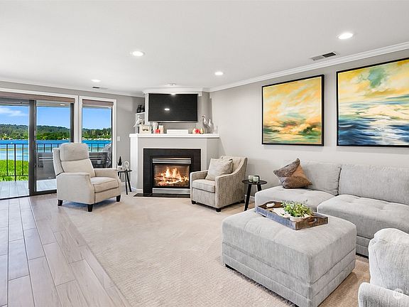 Extensive remodel of this unit means just move in and enjoy! Stunning views of Lake Washington and the unique opportunity to watch an occasional float plane take off and land right from your living room. Welcome to Inglewood Shores, a rarely available waterfront community. This home features tile flooring, some carpet, new furnace + A/C, black SS appliances, auto powered sunshade and so much more. Everything refreshed - lives like a 2024! Comfortable and stylish living spaces with big rooms and cov'd deck. With elevator access, secure garage with 2 parking spots (and plenty of storage), this condo combines modern conveniences with the serene beauty of lakeside living. Walk to golf, clubhouse socials, your community pool and tennis courts!